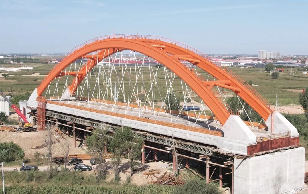 克日,跨捷地碱河特大桥主体钢构顺遂落成。跨捷地碱河特大桥全长131米,为下承式有砟轨道双线简支拱高速铁路桥,首要承重布局为提篮式钢管拱肋及尼尔森吊杆系统,拱肋用七百余吨重型钢布局件及一切吊杆用钢缆,均由巨力索具股分无限公司制作,装置。