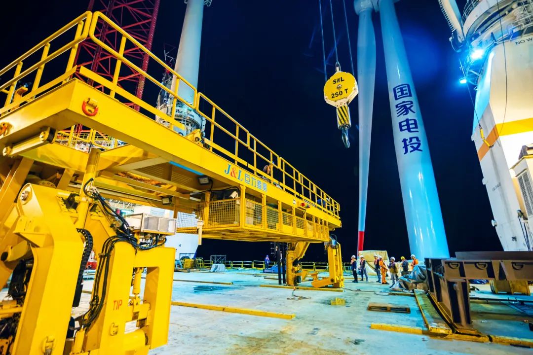 2021年8月19日,华能山东半岛南4号海优势电名目顺遂完成首台风机“全体”吊装,风机全体最大分量为650吨,该吊装设备包含运输底座、井字架、均衡梁、电气体系、液压体系、缓冲体系等部件组成,是巨力索具在南方内地地域海优势电首个风机全体吊装名目。首创了国际海优势电实行5.0兆瓦以上单桩根本风机全体吊装先河。