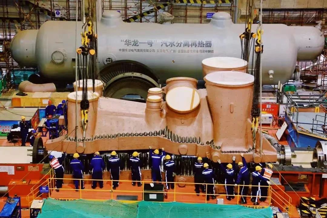 2017年11月28日,首台蒸汽产生器吊装就位。