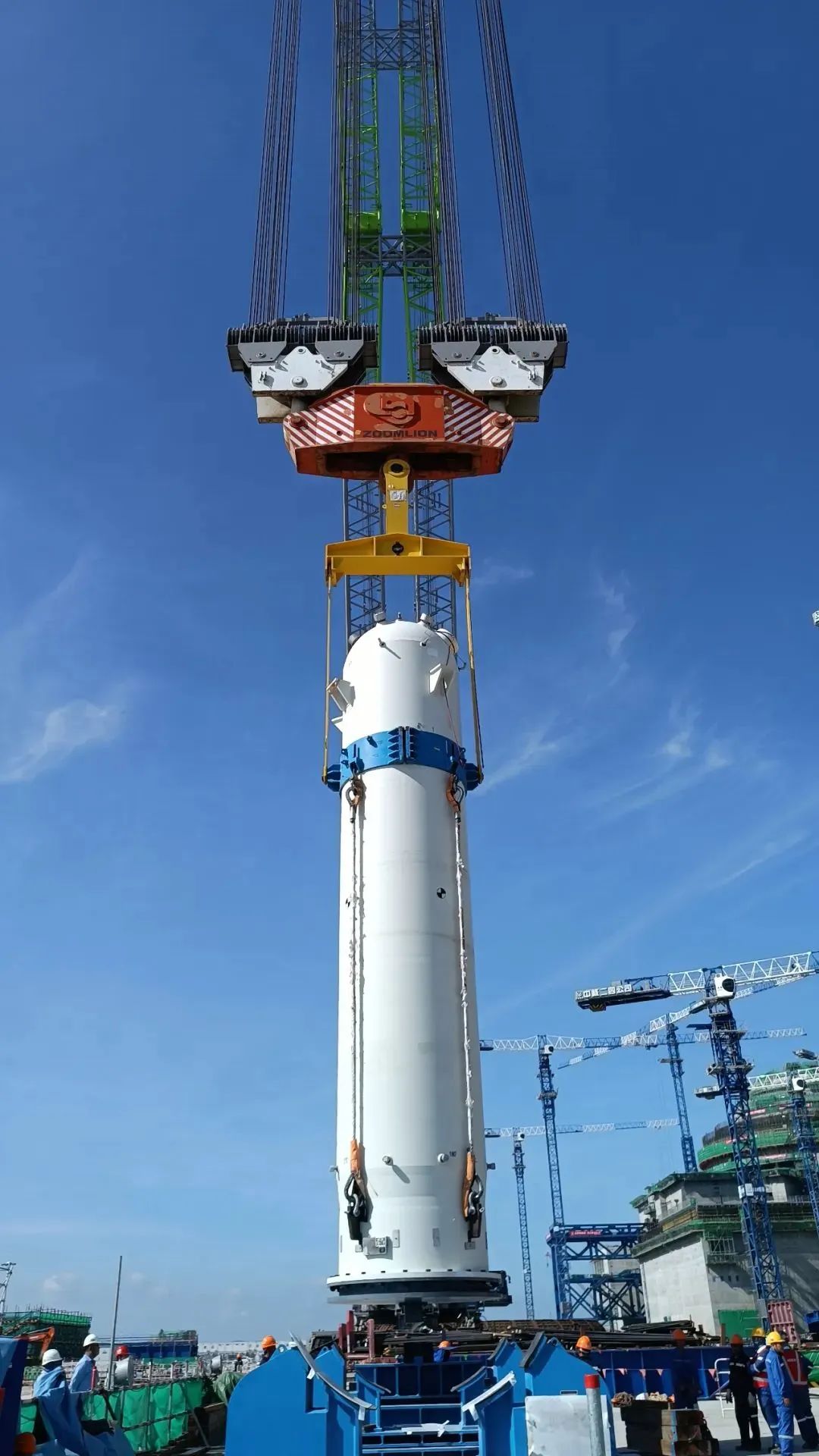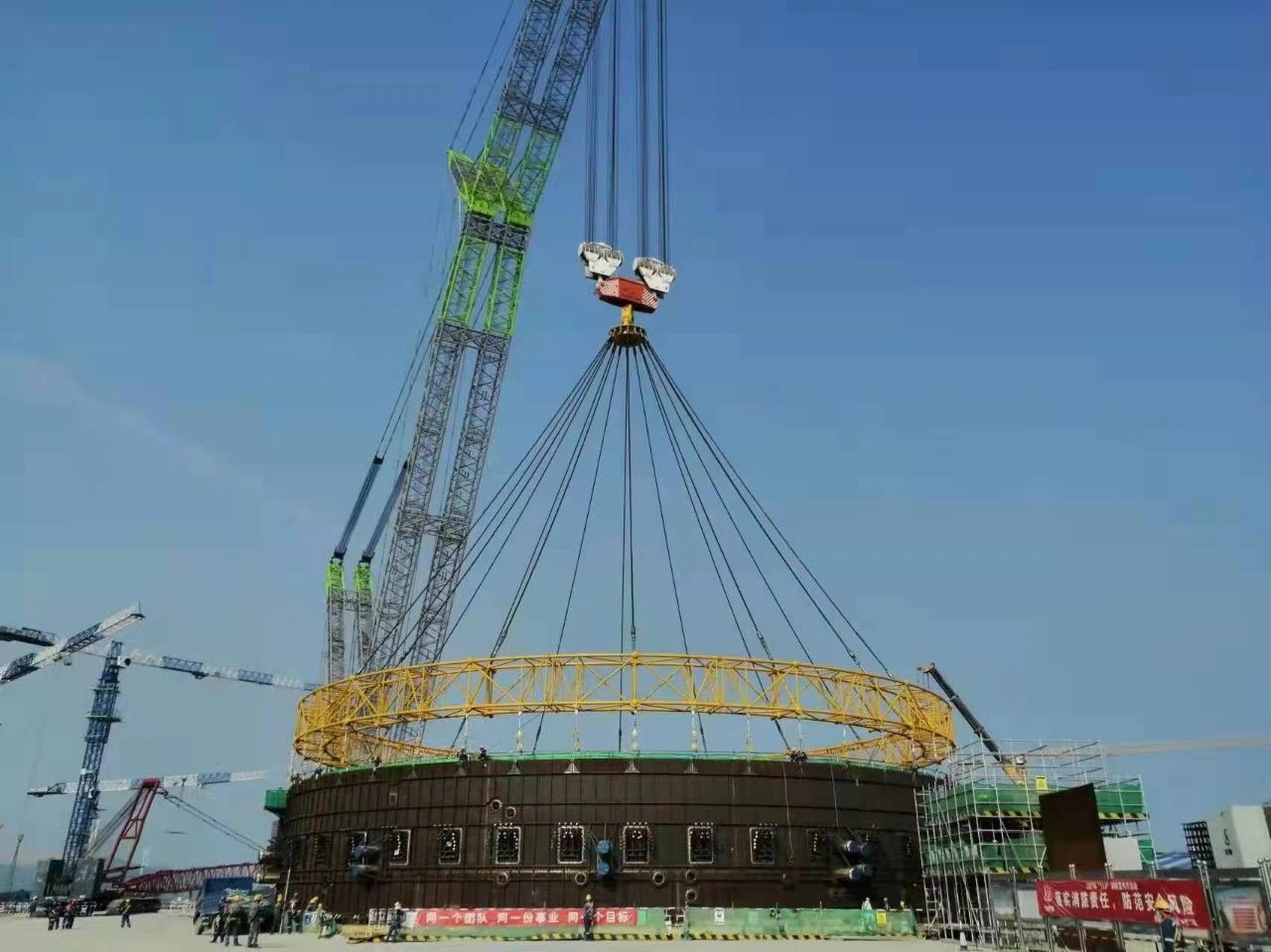 2017年5月25日,“华龙一号”核电站环球首堆福清核电5号机组穹顶吊装起头,吊装的整套吊装东西均由巨力索具供给,吊装体系包罗1140吨级的圆形过分梁,16个大型吊耳,16根100吨级的闭式浇筑钢丝绳子具、16套1140吨级的可调拉杆装配,为穹顶的顺遂吊装供给了靠得住的吊装索具。