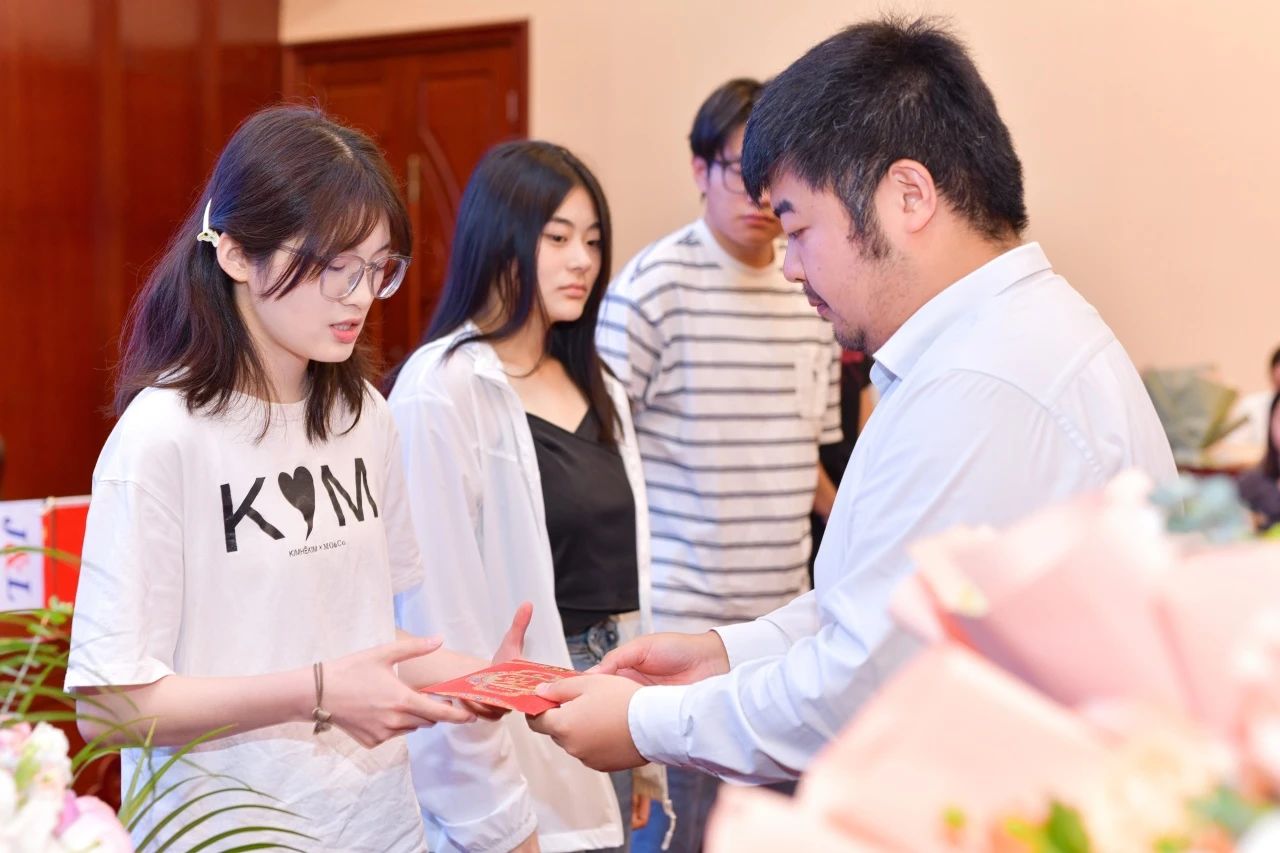 分享会上,杨超向历尽艰辛供后代肄业的职工及家眷表现高尚的敬意,向金榜落款的职工后代表现强烈热闹的庆祝,他经心的为每位参加的考生筹办了两份礼品:一本册本和一份助学金。抒发他对考生的夸姣祝贺。