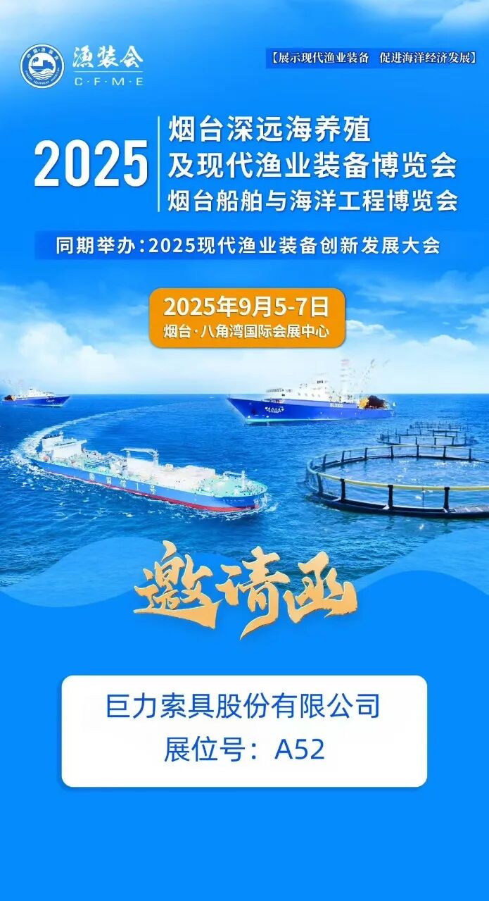 为深(shen)切贯彻落(luo)实党的(de)二(er)十大精力和(he)对于(yu)陆地强国(guo)(guo)扶植(zhi)的(de)系列主要阐述,更(geng)𒊎好的(de)增进以深(shen)远海(hai)养(yang)殖为代表的(de)渔业装备高品德(de)成长,中(zhong)国(guo)(guo)渔船渔机鱼具行(xing)业协会、山东省渔业船😼舶协会、中(zhong)国(guo)(guo)交通运输协会洁净能源车船分会于(yu)2025年9月(yue)5-7日在烟台八角湾国(guo)(guo)际会展中(zhong)间举(ju)行(xing)“2025烟台深(shen)远海(hai)养(yang)殖及古代渔业装备博览(lan)会”。