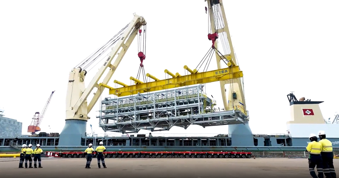 巨力索具首要担任该名目模块的吊装,别离供给了额外载荷为600T、300T、690T的吊框,吊装才能为55T、75T、100T的卸扣及6种差别规格的无讨论绳圈,并供给专业吊装打算,全程保证模块吊装的顺遂停止。